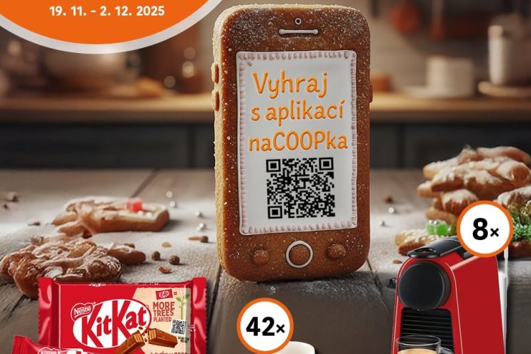 Nakupte v termínu od 19. 11. - 2. 11. 2025 alespoň dvě tyčinky KitKat U pokladny načtěte svůj čárový kód z aplikace naCOOPka Soutěžní kód se…