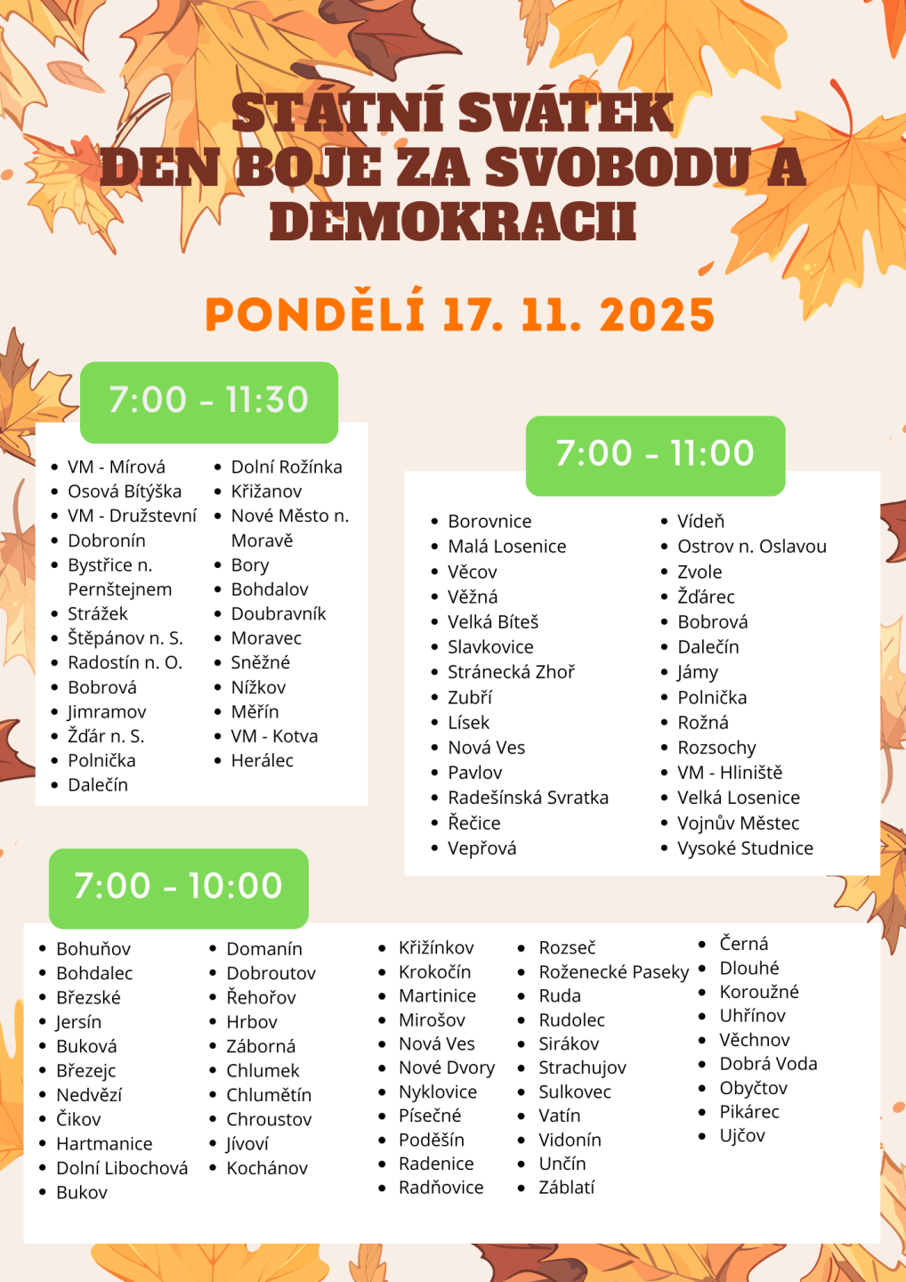 v pondělí 17. 11. 2025 bude otevřeno od 7:00 hod do 10:00 - 11:30 hod, dle velikosti prodejny (viz. rozpis)